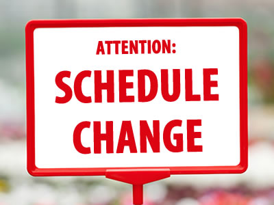 Times subject to change on holidays and Holy Days.